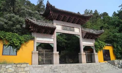 小路直接插入了上山的路,所以,我们没有经过山门。我们一路向上,欣赏着沿途的风景:一棵棵参天大树矗立在石阶两旁,有的根都从土里突出来了,一群小鸟在林间叽叽喳喳地玩耍着,好一派生机勃勃的春景呀!石阶十分光滑,在阳光下发出像玉一样温润的光,想必是游人太多,踩磨的结果吧。